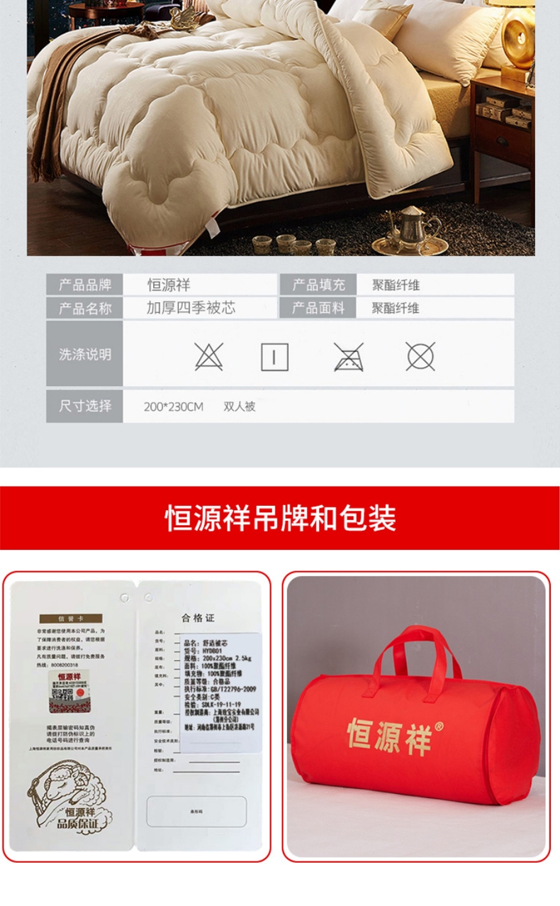 测试商品-恒源祥家纺被子 舒柔双人四季被芯200*230cm 5斤加厚春秋被