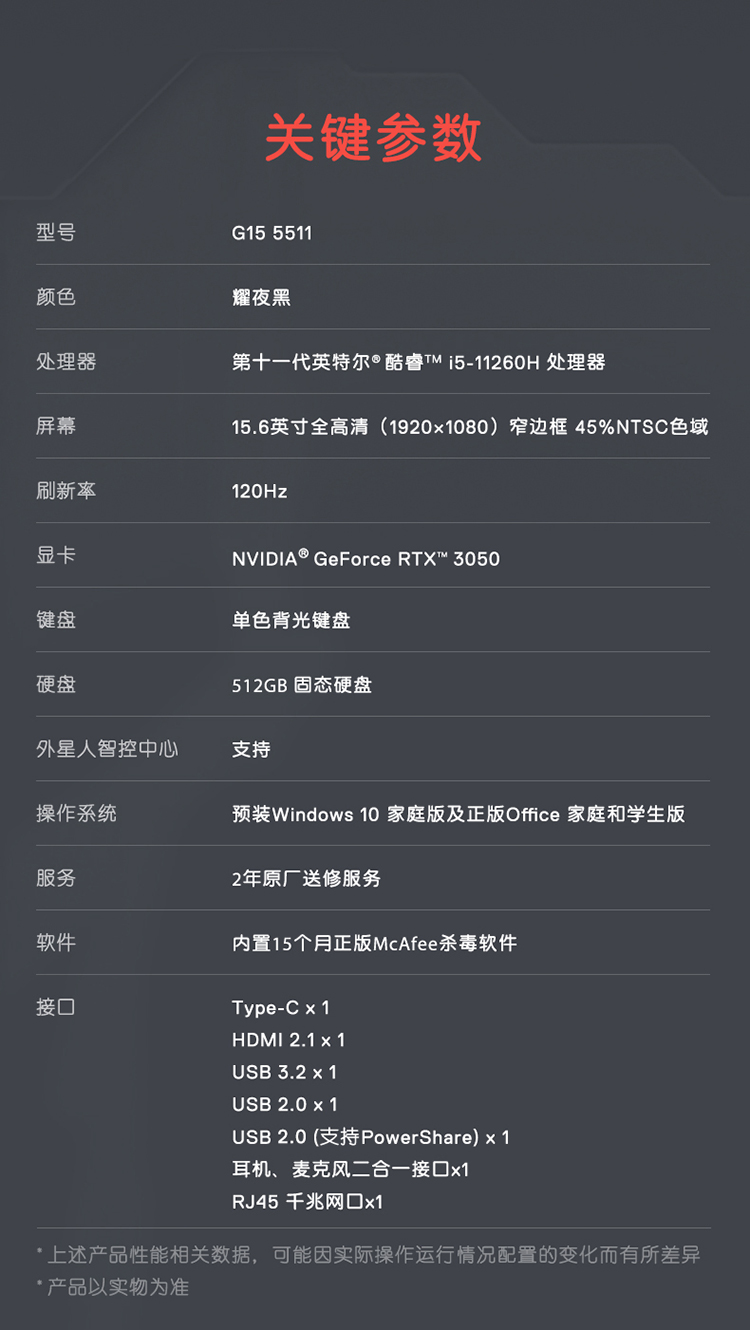 测试商品-戴尔(DELL) 笔记本电脑 游匣G15 15.6英寸电竞游戏本(11
