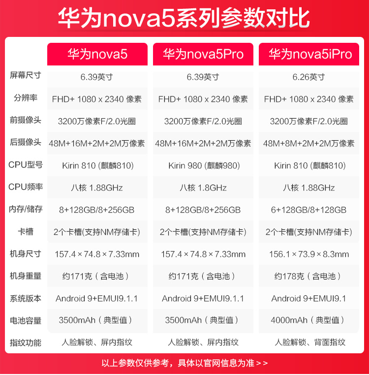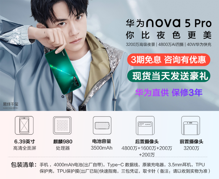 华为nova5正品直降990元HUAWEI nova 5官方旗舰店nova5pro手机i 6